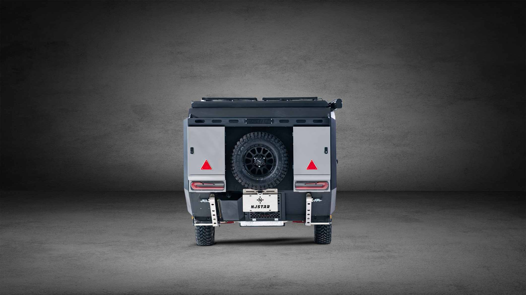 NJSTAR COMMANDER łączy komfort w domu z mocą w terenie. Kuchnia na świeżym powietrzu z lodówką, zlewem, schowkiem i kuchenką o mocy 15 000 W. Toaleta wewnętrzna z grzejnikiem na olej napędowy i szybko działającym prysznicem. Rozkładany salon, łóżko dla dzieci, zasilanie indukcyjne i schowek o pojemności 1000 l. Wyposażony do pracy w ekstremalnym terenie: energia słoneczna 720 W, ładowanie 50 A, falownik 3000 W, prześwit pod pojazdem 40 cm, stalowa rama klatkowa, aluminiowy korpus i niezależne zawieszenie z podwójnymi amortyzatorami — stworzone, aby pewnie pojechać jeszcze dalej.